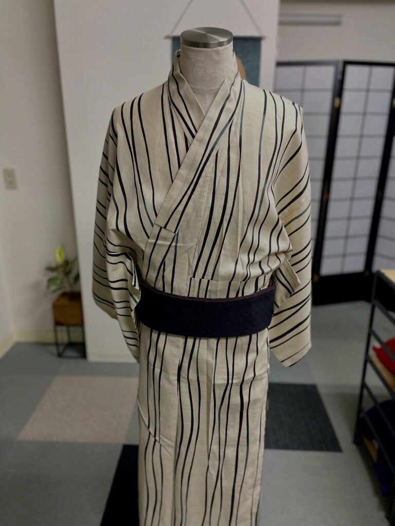 生成りをベースに筆を走らせた様なストライプの浴衣です。