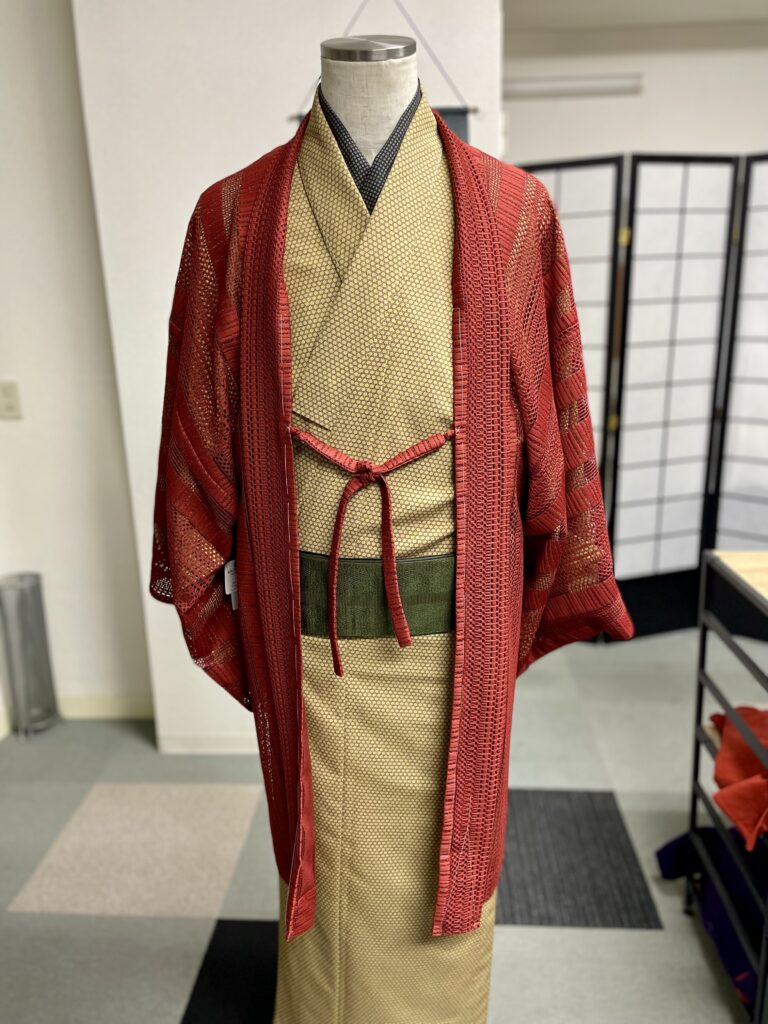 長着は昨日紹介したものですが、角帯と薄羽織をオータムカラーにしてみました。
