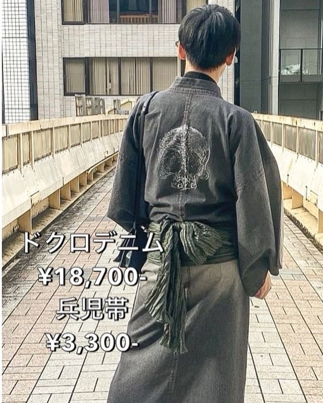 男着物の世界も色々ですから高額な正絹の着物ばかりではなくもっとカジュアルな着物や洗える着物で自由に着物を楽しむ方が年々増えています。その中でも最も気軽に着やすい着物がデニム着物だと思います。金額は12,100円からご用意しています。