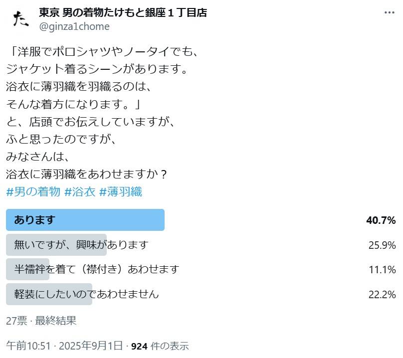 At Takemoto Men’s Kimono Ginza 1-chome store, we sell ready-made kimonos for men that can be worn immediately. You can try them on. Payment can be made by cash or card. We cannot ship overseas.