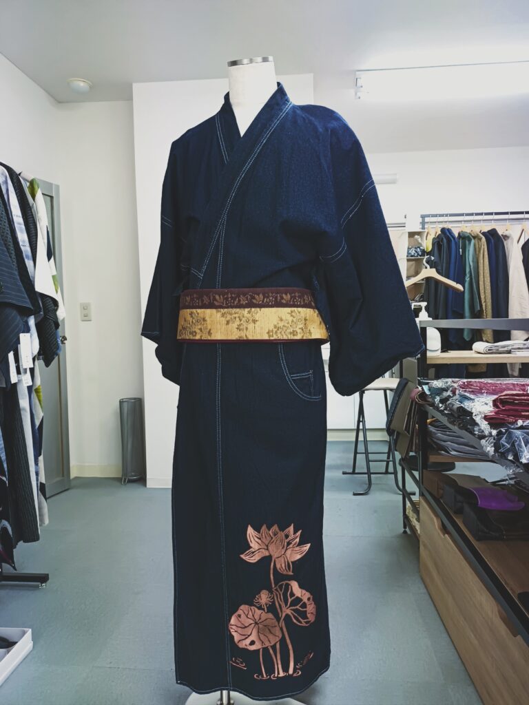 前身頃に大きな蓮の華を配置しました。